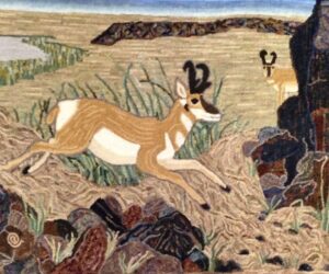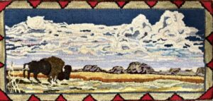 Where Buffalo Roam, is a pattern I drew and hooked to fit on a bench that my late father had made. The bench had been with me for some time…and eventually 'spoke to me'…and the pattern came to be! It is indicative of the area of the country where I live. The Badlands of western