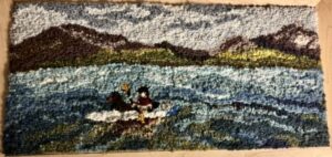 This is my second original project and my fourth rug hooking project. It’s from a photo of my son and his dog at Dillon Reservoir, CO.