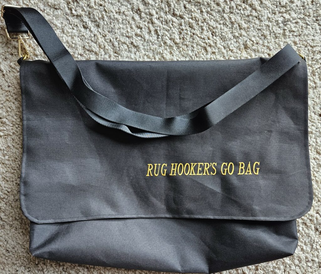 This custom-made “Rug Hooker’s on the Go” travel bag is designed to fit the custom made travel frame. If you already have a travel frame and do not have a bag for it, you may find it also works with your current frame. Bag Size is 14″ x 20″ x 5″.