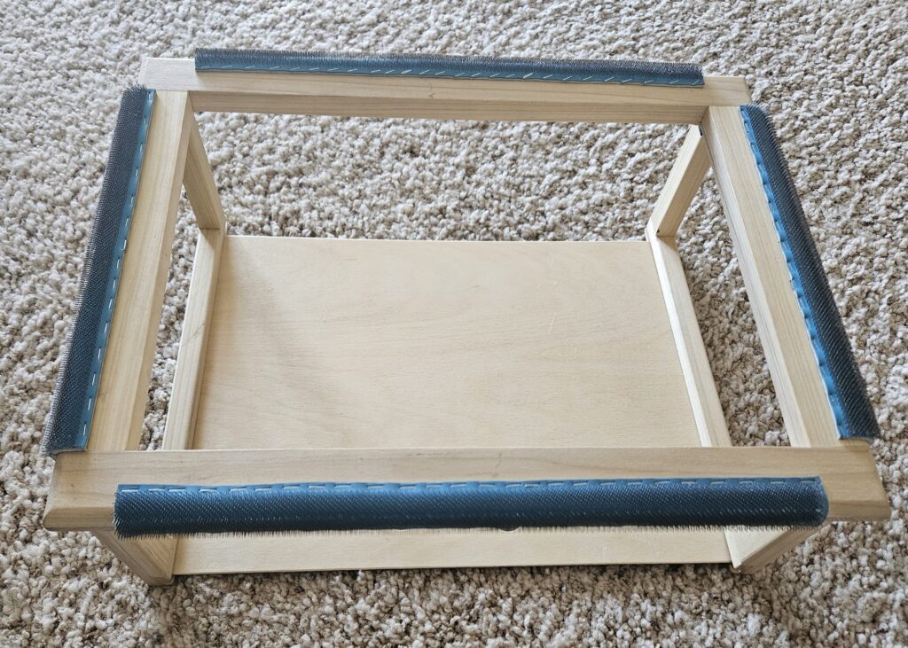 These rug hooking frames are custom-made, one at a time, by Jay Hicken, a local Utah artisan. They are made for travel as they collapse to a height of 2 inches when folded, perfect to place in your travel bag or suitcase for those rug hooking camps you plan to attend. The frames are produced as a limited edition, so be sure to order early to not miss out! When they are gone they are gone. Each one has been wood-burned with the ATHA 2026 convention logo as a special memento of this event. Overall size of the frame is 14″x18″ by 6-7″ in height, collapsible to 2 inches for transit.